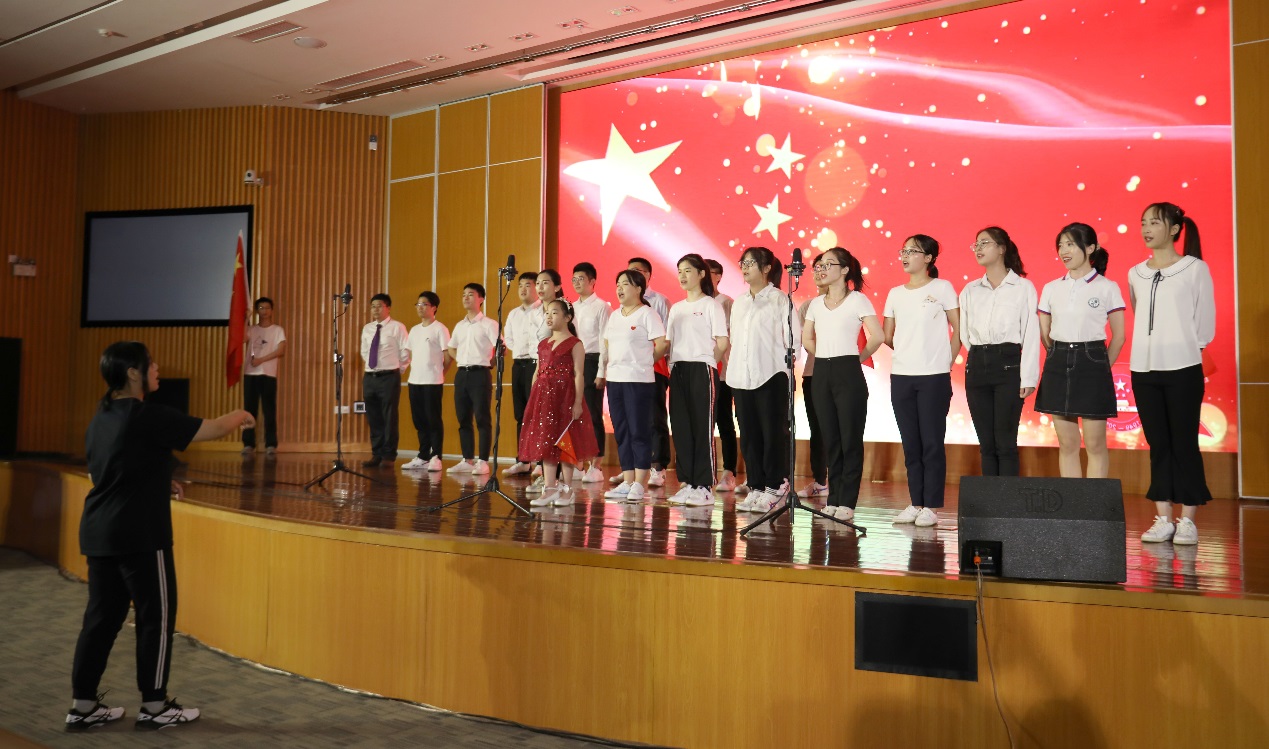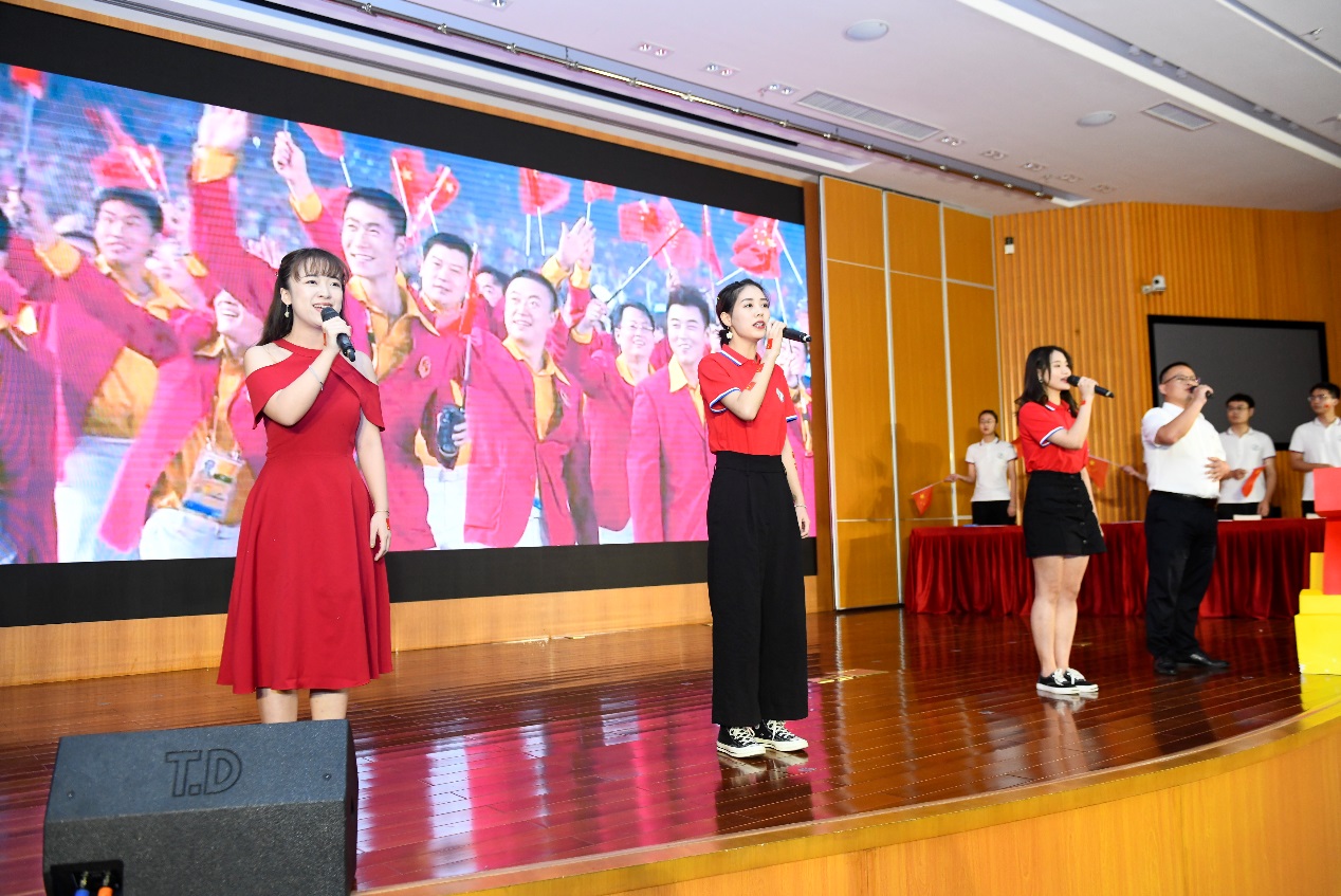 由2018级班主任李谞媛老师和钟德清老师作为助唱嘉宾,2018级会计班的肖梦涵、代艳等同学带来合唱《五星红旗》,抒发了老师、同学们的深深爱国之心、拳拳报国之情。