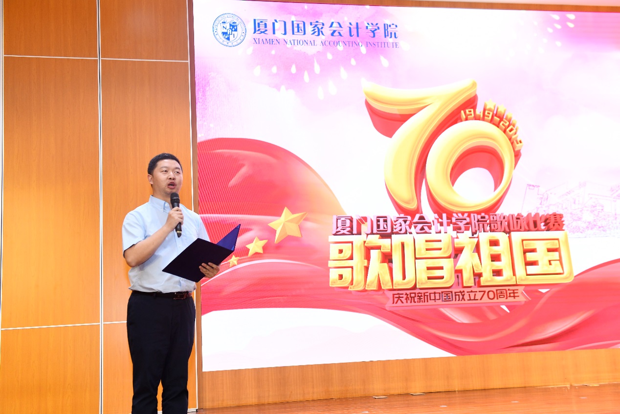 为庆祝中华人民共和国建国七十周年,丰富校园文化生活,为我院研究生搭建一个展示自我的平台,体现我院研究生爱国进步、积极向上的精神风貌,通过歌声弘扬与传递正能量,汇聚更多的青春活力与朝气,9月24日晚,厦门国家会计学院研究生“歌唱祖国”歌咏比赛决赛在小报告厅隆重举行。院党委书记刘光忠,党委委员、副院长李进西,“一带一路”财经发展研究中心主任蔡剑辉,研究生处处长张佳林,财务处负责人陈艳萍,研究生处副处长方志斌以及学院教职员工、全体研究生欢聚一堂,共同观看了本次决赛。