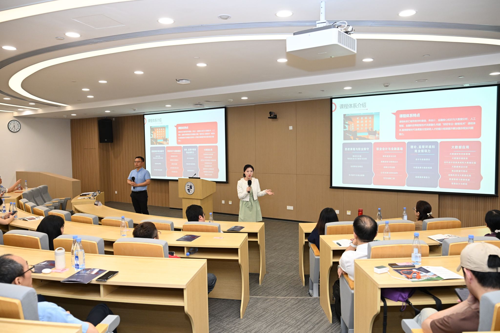 在项目宣讲环节,学院硕士项目学术主任洪祥骏副教授围绕项目培养目标、课程体系、师资团队、教学特色及报考相关事项进行系统讲解,清晰呈现会计、金融、大数据、人工智能交叉融合的培养体系,全面展现项目在国际化、复合型财经人才培养方面的核心优势。