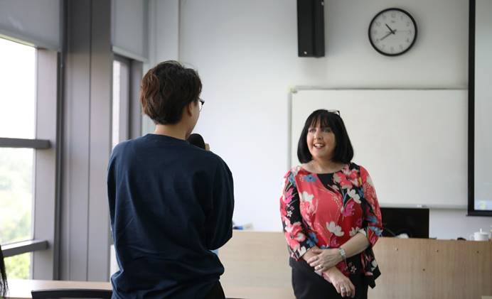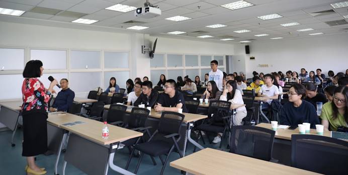座谈会后,Deering主任参加了与2019级MPAcc及MAud学生见面会。在见面会上,Deering主任首先向同学们简要介绍了都柏林大学斯莫菲特商学院的基本概况和学科优势,她指出斯莫菲特商学院是爱尔兰最顶尖的商学院,也是世界上最优秀的商学院之一。接下来,Deering主任向同学们讲解了学校的师资力量、教学方法、就业情况和入学标准,并通过视频向同学们展示了爱尔兰的优美自然风光和都柏林大学的校园环境,使同学们对留学项目有了更加清晰和直观的了解。