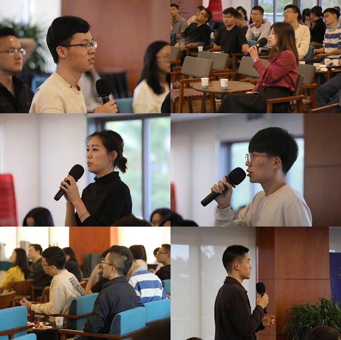 在校下半场自由问答环节,同学们踊跃提问。针对同学们关于学业、就业的问题,三位学长学姐分别给出了自己的看法。