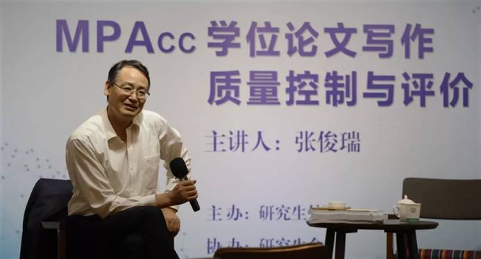 随后,张教授向同学们介绍了MPAcc学位论文质量控制方法,希望大家重视质量控制环节,并以历年全国优秀论文为例,具体分析了MPAcc论文评估体系,让在座同学对论文的写作与评价有了更清晰的认识。