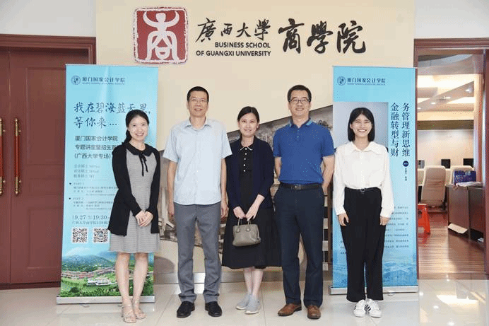 9月27日至30日,厦门国家会计学院2021研究生招生宣讲团兵分两路,以研究生处处长张佳林教授和“一带一路”财经发展研究中心主任蔡剑辉教授带队前往湖南长沙,走进中南大学和湖南大学;研究生处副处长方志斌副教授和教研中心主任邓建平教授带队奔赴广西南宁,走进广西大学。