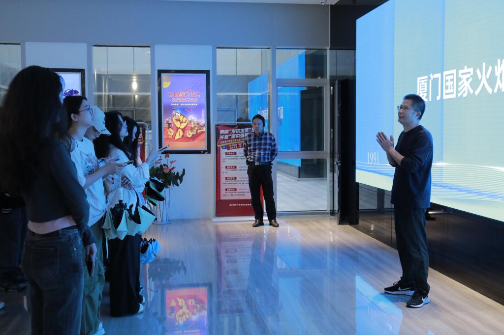 参观行程的首站是2022年落地厦门的华为开发者创新应用中心。抵达中心后,同学们通过一个简短的视频介绍了解了该中心自2022年正式投入运营以来已经完成的工作、当前能够提供的服务,以及未来的研究方向。