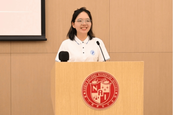 2025级硕士新生代表审计专业唐子渊同学以研途两问展开思考:研究生究竟意味着什么?未来三年该如何度过?结合暑假事务所实习经历,她感悟到研究生是认知边界的打破、微小习惯的放大与珍贵时光的馈赠;而如何度过三年,则需做知识的深耕者、协作的联结者、社会的反哺者——以诚信态度对待学术,以开放姿态拥抱合作,以专业能力回馈社会。
