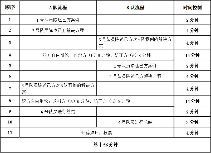 分组双方需要在18小时内相互研究、分析对方提交的案例报告,就对方报告提出己方的解决方案,并进行自由辩论。