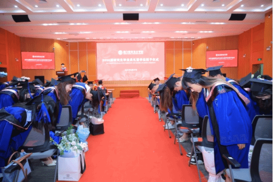 在方志斌的主持下,2025届毕业生们向学院领导老师、后勤、信息、物业服务人员、家长鞠躬致谢。