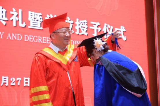随后,丁友刚为2025届硕士毕业生拨流苏,并颁发学位证书。