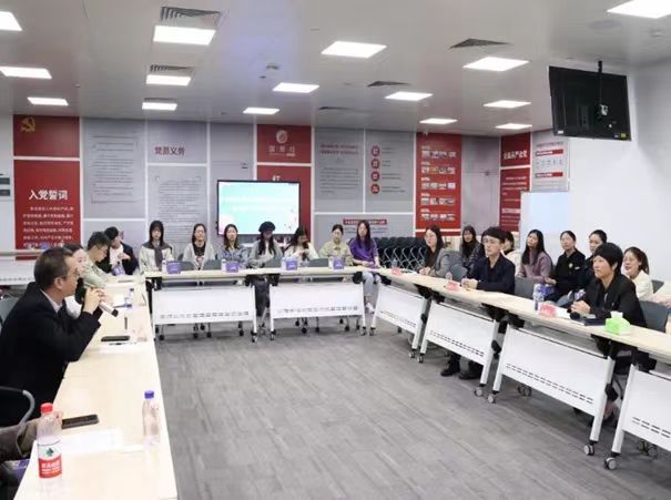 参观结束后,国贸股份财务部副总经理宋淑红,人力资源部总经理助理、团委书记潘倩倩,人力资源部校园招聘经理李芃春,校友代表廖恒坚,校友代表张玉婷与学院师生进行了交流座谈。
