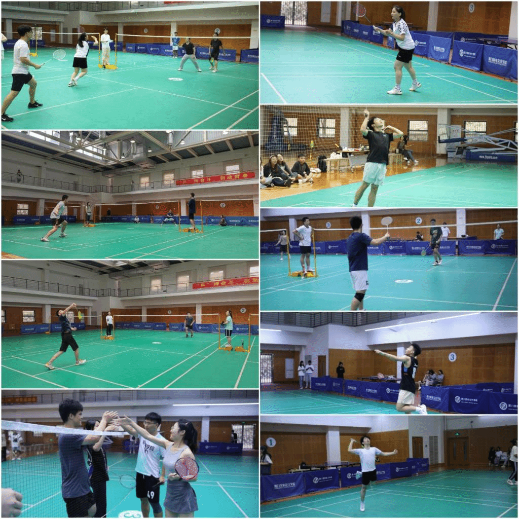 羽毛球赛场最先在混双选手的挥拍声中开始比赛,运动员前后配合默契做到攻守兼备,把握住进攻和防守的平衡。在单打比赛中,扣杀、快攻、轻吊,各样的技巧展示得淋漓尽致,观众群中也响起了热烈的掌声。