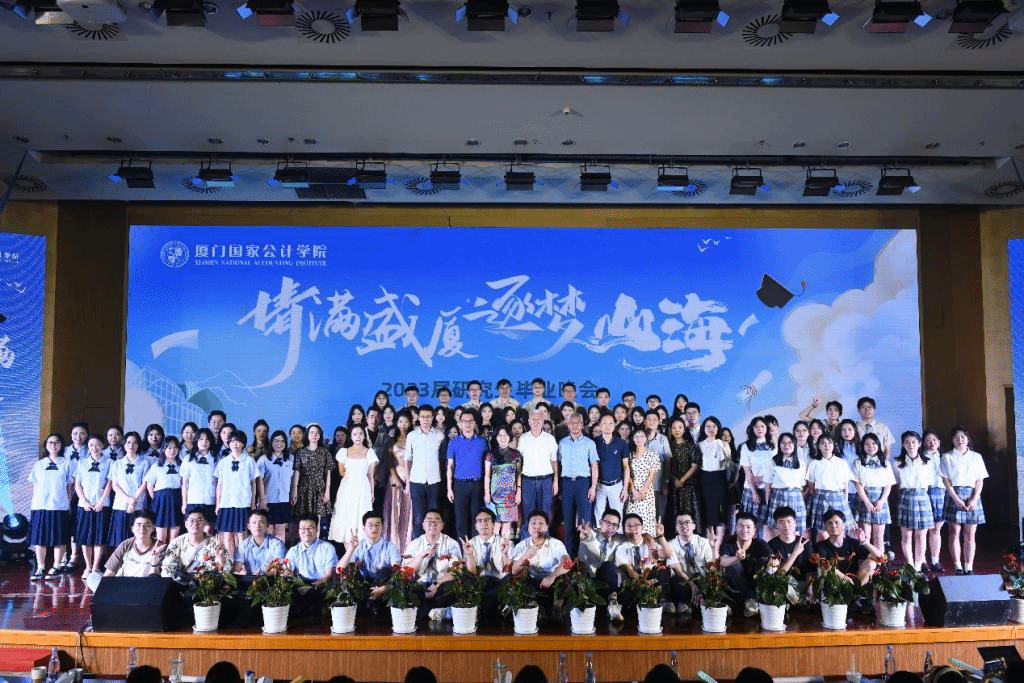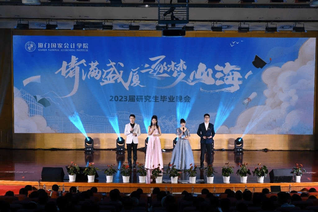 6月27日晚,学院大报告厅音乐响起,厦门国家会计学院2023届“情满盛厦,逐梦山海”研究生毕业晚会于19时正式开始。厦门国家会计学院党委书记韩景义,党委委员、副院长李进西,党委委员、纪委书记、副院长郑涌莅临本次晚会现场,与研究生处师生、学院教职员工及家属、在校培训学员、学生家长共同观看了这场精彩演出。