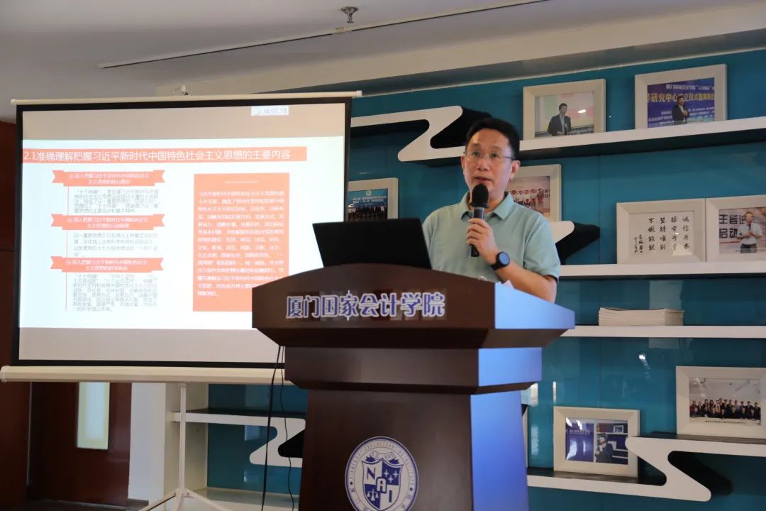 参观结束后,厦门市财政局纪检组长张康雪在云顶沙龙以“时刻保持解决大党独有难题的清醒和坚定 以党的自我革命引领社会革命”为题,为全体毕业生讲专题党课。院党委委员、纪委书记、副院长郑涌,研究生处教职员工及全体毕业生参加党课学习。会议由研究生处党总支书记方志斌主持。