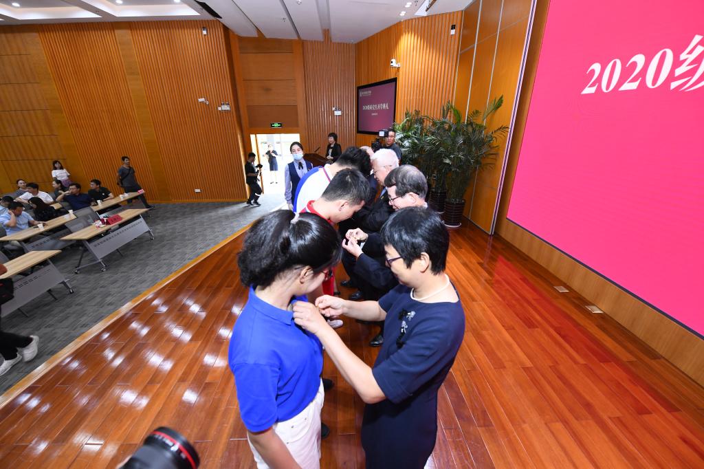 典礼的最后,2020级新生一同佩戴厦门国家会计学院校徽。小小的校徽,代表了学子三年的归属,也是学子对母校一生的承诺,从今天开始,我们既分享厦国会的辉煌与荣耀,也承担厦国会的使命和担当,我们骄傲自豪,我们信心满怀,我们将不辱使命,砥砺前行,乘风破浪,再创辉煌。