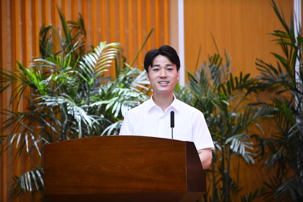 老生代表2019级会计专业的廖恒坚同学在发言中分享了厦国会三年的正确打开方式——潜心修志,学以广才。既心怀大志,还应立小志,从而行稳致远,同时还要将志向付诸实践,始于拜读老师们的大作,陷于心无旁骛的课堂,忠于案例大赛、职场实习等实战演练。最后,他为大家带来来自学长的温馨提示:CPA还有35天到达战场。