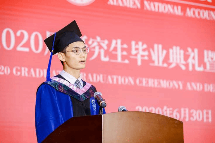 毕业典礼上,他作为学生代表发言,他感恩两年的厦国会生活教会了他理想、本领、担当,并表示,作为新时代的厦国会青年,定将不忘初心、牢记使命,把青年精神融入血脉,为祖国的壮丽伟业、民族的复兴之路奉献自己的汗水与热血,让青春在党和人民最需要的地方绽放绚丽之花!