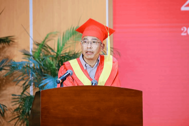 他希望同学们深刻理解道与术的关系,做到正心、明道、优术、践行;妥善处理取与予的关系,知恩图报,取予有节,德配其位,甘于奉献;正确对待得与失的关系,保持得之坦然、失之泰然的洒脱,始终勤于耕耘,步履不停,安之若素,笑对挫折。