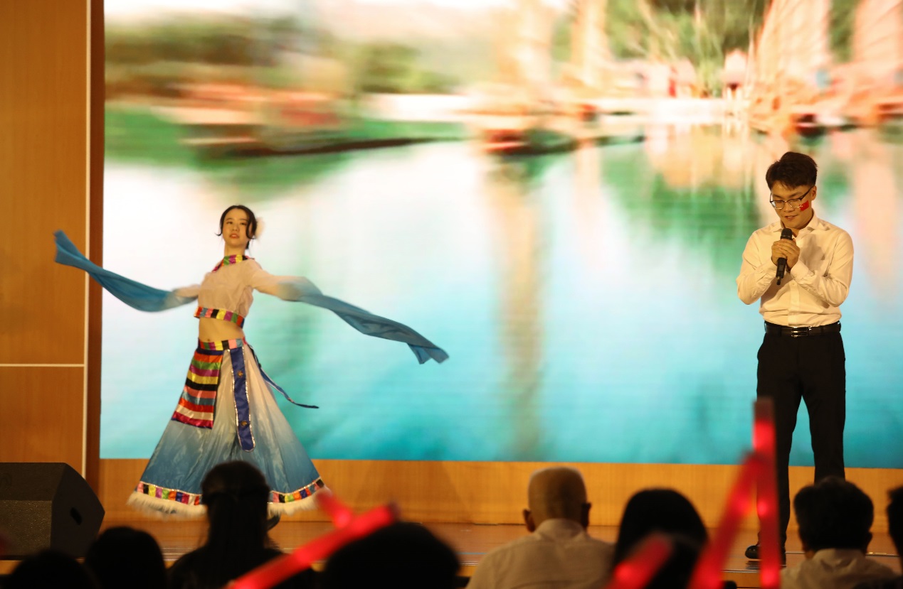 2018级会计班的王凯、孟亚奇同学和学院教务处的汪太明老师为大家带来歌曲《东方之珠》,歌声里回旋着一腔血脉共流的情怀。