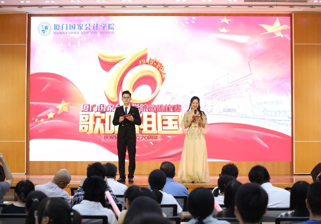 为庆祝中华人民共和国建国七十周年,丰富校园文化生活,为我院研究生搭建一个展示自我的平台,体现我院研究生爱国进步、积极向上的精神风貌,通过歌声弘扬与传递正能量,汇聚更多的青春活力与朝气,9月24日晚,厦门国家会计学院研究生“歌唱祖国”歌咏比赛决赛在小报告厅隆重举行。院党委书记刘光忠,党委委员、副院长李进西,“一带一路”财经发展研究中心主任蔡剑辉,研究生处处长张佳林,财务处负责人陈艳萍,研究生处副处长方志斌以及学院教职员工、全体研究生欢聚一堂,共同观看了本次决赛。