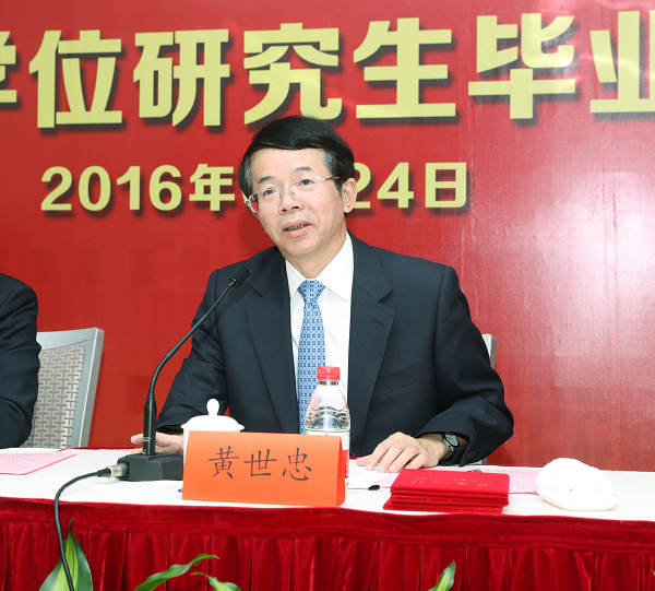 最后,黄世忠院长宣读了学位授予决定。毕业生们依次上台,刘光忠和黄世忠为他们颁发学位证书并援正流苏。
