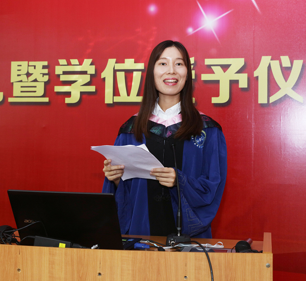 学生代表施曼莉同学代表毕业生感恩母校、家长、师长和同学,她表示,作为头三届的学生,定不会辜负母校的期望,努力成为勇敢而优秀的开拓者!