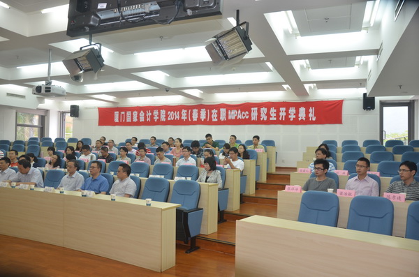 5月17日上午,我院2014年(春季)在职MPAcc研究生开学典礼在教学楼209教室隆重举行。邓力平院长、黄世忠副院长出席并讲话。宁波市财政税务学校史波副校长、学院各处室负责人、教研中心教师和2014年(春季)在职MPAcc新生一起了参加开学典礼。开学典礼由研究生处处长王一平主持。