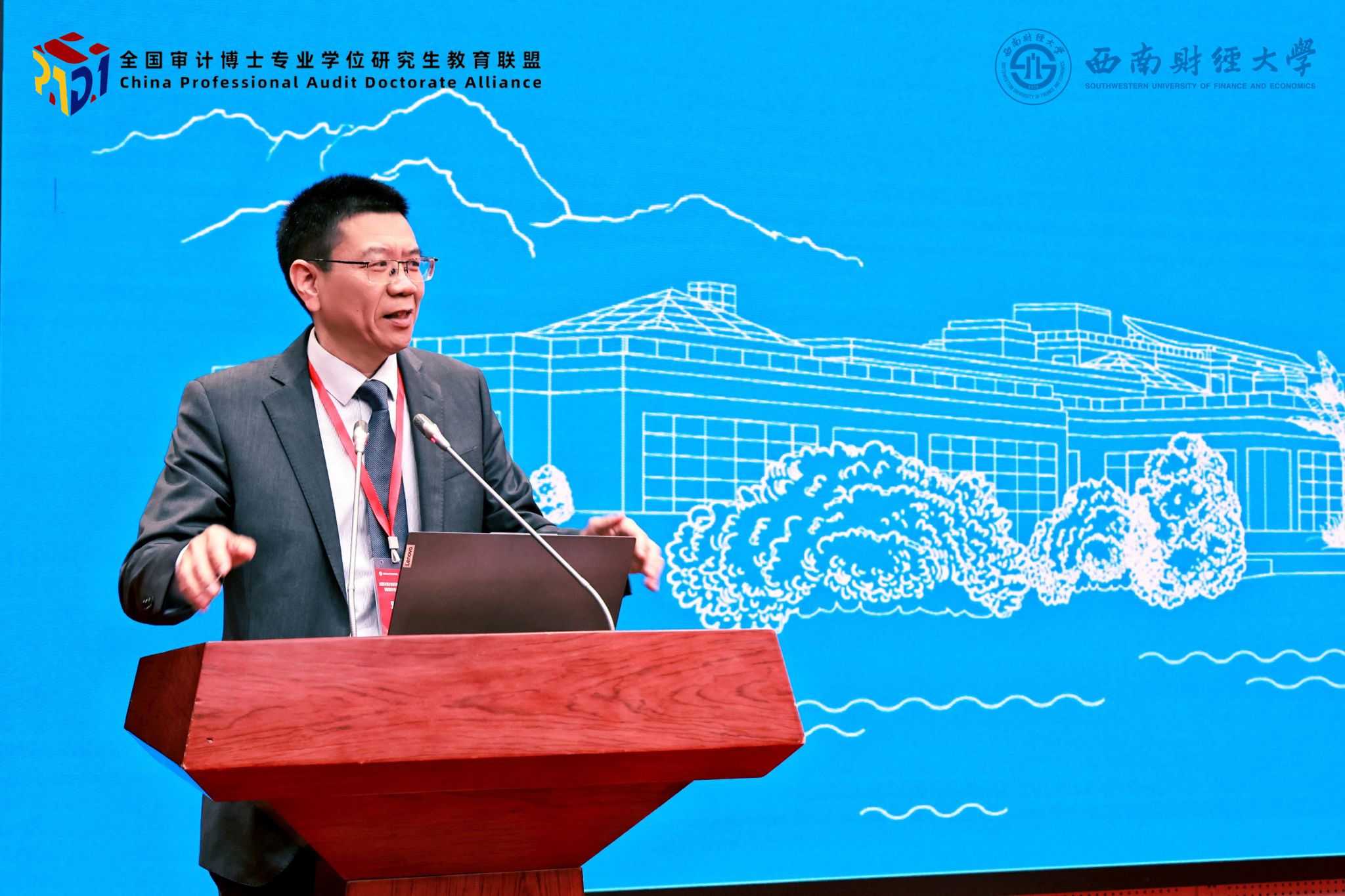 在高质量发展论坛上,邓建平作题为“探索特色鲜明的审计专业博士培养路径”的主题报告。他系统介绍了学院在审计专业博士培养方面的整体规划、目标定位、研究方向与实施路径,结合学院在高层次审计人才培养方面的实践经验,深入阐述了如何依托学院特色与优势,构建差异化、高水平的人才培养模式,持续提升育人质量。