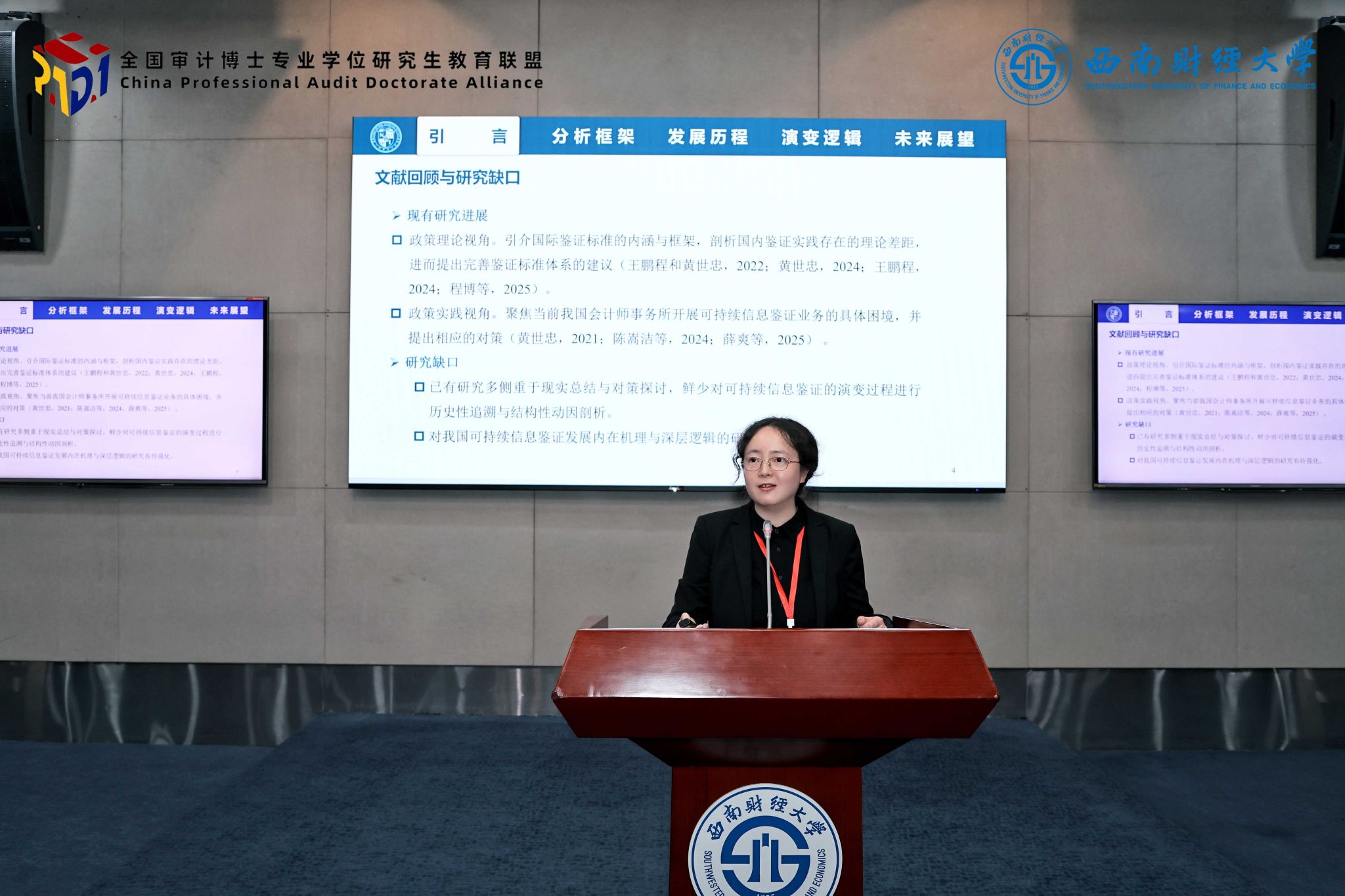 崔东颖作题为“我国可持续信息鉴证的发展历程、演变逻辑和未来展望”的学术报告。她系统梳理了我国可持续信息鉴证的发展脉络,深入剖析其演进的内在逻辑,并对该领域的未来发展趋势作出前瞻性展望,充分展示了学院在审计前沿领域的科研积累与青年学子的综合素养。