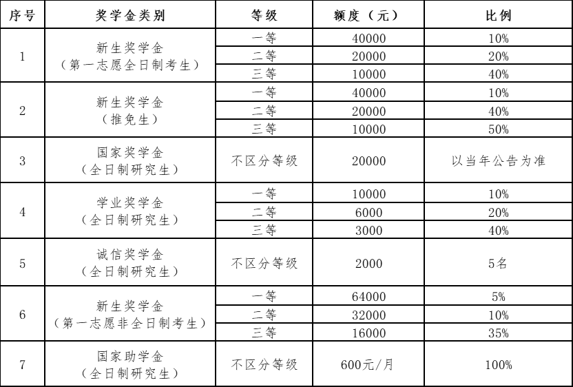 我院研究生奖助体系基本情况见下表: