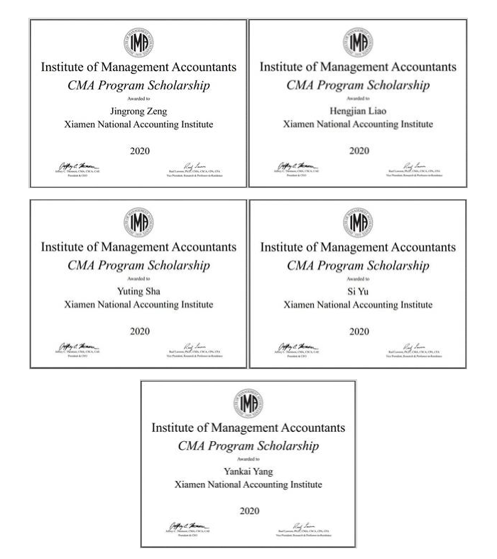 近日,我院收到来自美国管理会计师协会(The Institute of Management Accountants,以下简称IMA)邮件,我院2019级MPAcc及MAud两个专业全日制硕士研究生曾婧容、廖恒坚、余偲、沙钰婷、杨严凯五位同学荣获2020年度CMA专项奖学金。
