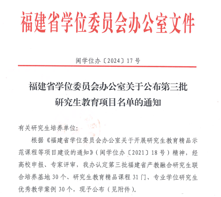 根据福建省学位委员会办公室发布的《关于公布第三批研究生教育项目名单的通知》,经高校申报、专家评审,我院与容诚会计师事务所(特殊普通合伙)厦门分所获批“福建省产教融合研究生联合培养基地”。