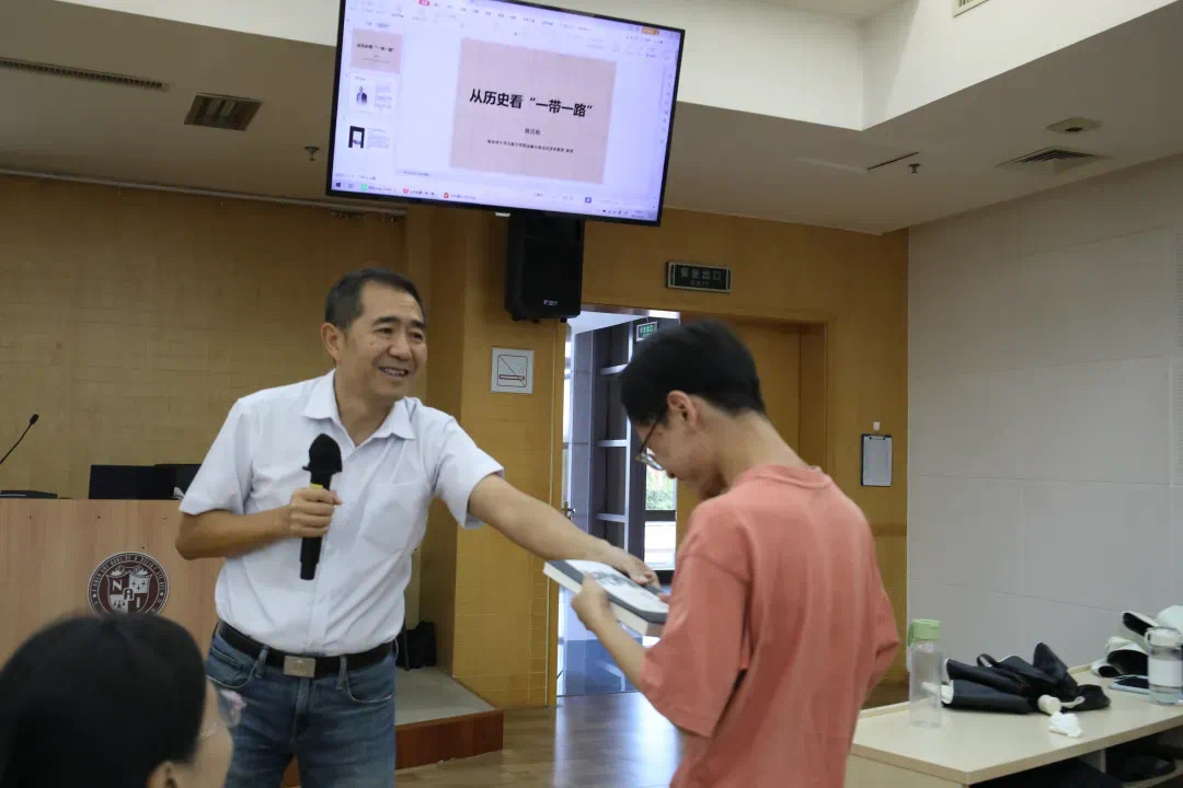 在互动环节,在场的同学和老师积极向陈百助教授提问,陈教授就提问进行了详细的解答。最后,陈教授向提问的同学和老师赠与自己所著的书《黑土重洋》,本次讲座圆满结束。